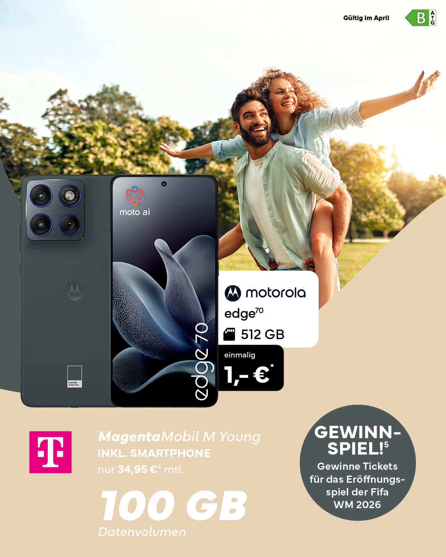 Hol dir jetzt das Motorola Edge70 im Telekom Tarif mit starken 100GB Datenvolumen im Monat und gewinne mit ein bisschen Glück Tickets für das WM-Eröffnungsspiel. 🎫 😍