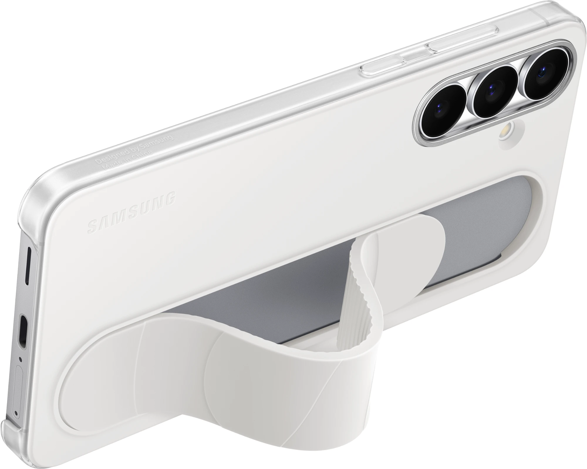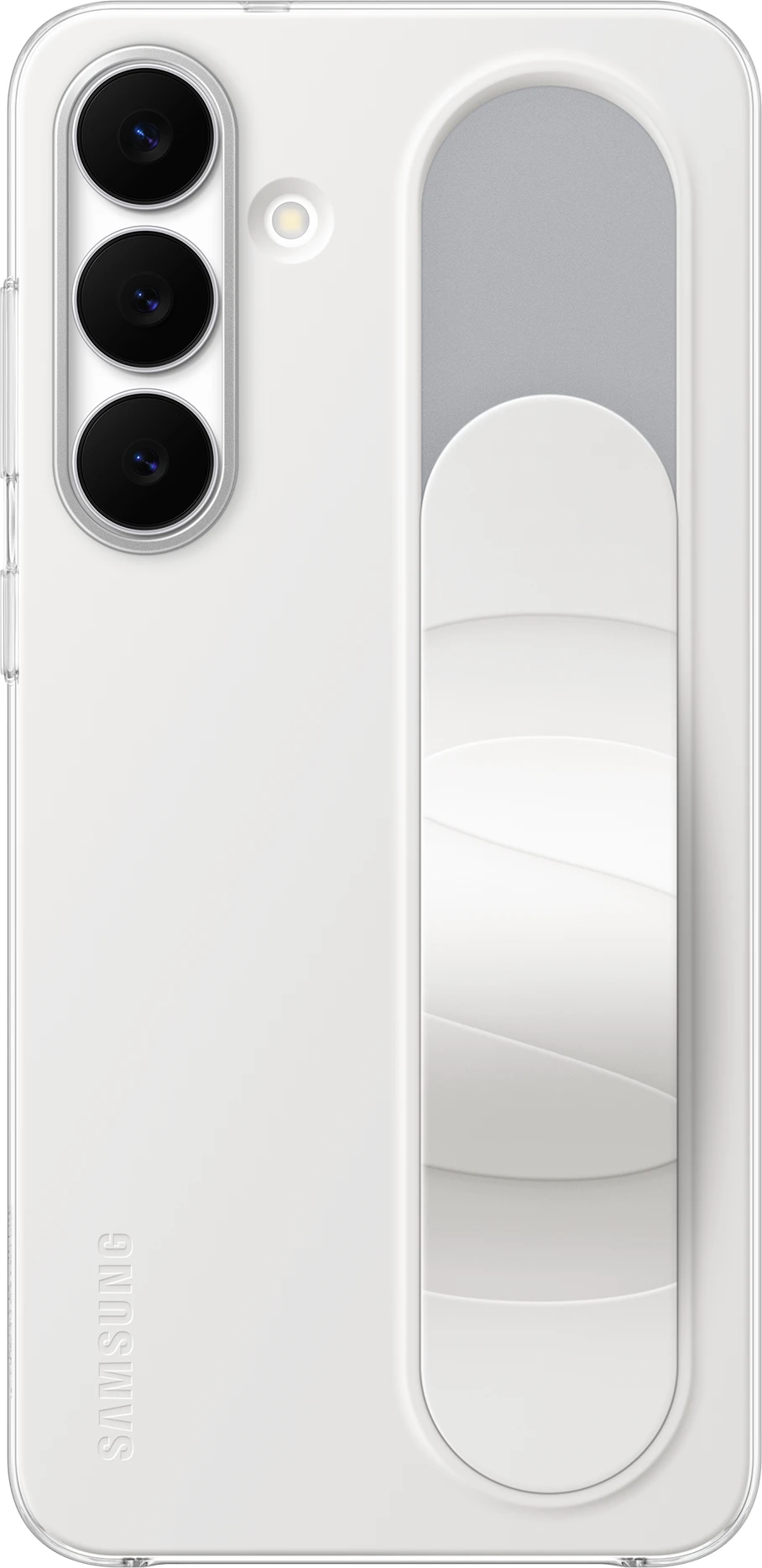 Mit dem Standing Grip Case liegt dein Galaxy S25 FE komfortabel und durch das Band zudem sicher in der Hand. Willst du bequem Videos oder Fotos betrachten, kannst du das Band herunterdrücken bis es fixiert ist und so dein Galaxy Smartphone aufstellen und die Inhalte unbeschwert genießen. Das Material überzeugt mit einer weichen Textur, die sich großartig anfühlt. Das Standing Grip Case sieht nicht nur stylisch aus, sondern bietet auch Schutz vor Kratzern und bei Stößen – sowohl für den Rahmen als auch die Rückseite.